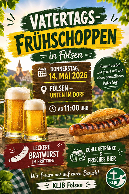 … zum traditionellen Frühschoppen in der Fölser Dorfmitte am 14.05.2026 ab 11:00 Uhr.